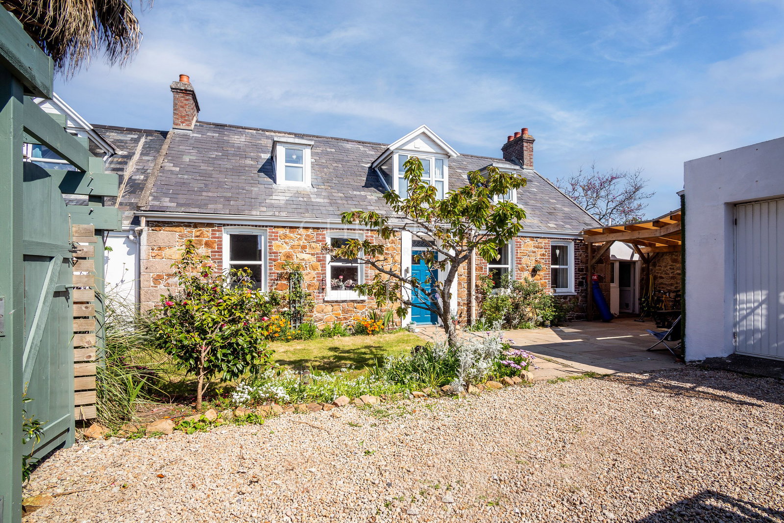 This attractive six-bedroom granite cottage is situated just 200m from the beach near Fauvic. The property belies its dormer cottage appearance and provides a five-bedroom main house and an integral one-bedroom wing perfect for two generation living or alternatively as a popular Airbnb choice.