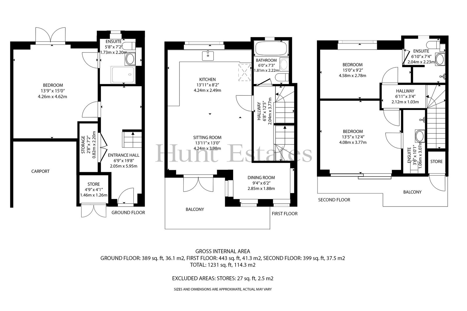 The first floor hosts a bright and spacious open-plan living area incorporating the lounge, kitchen, and dining space. This level is ideal for both everyday living and social gatherings, with patio doors opening onto a delightful south-facing balcony that floods the room with natural light and provides a welcoming outdoor retreat.