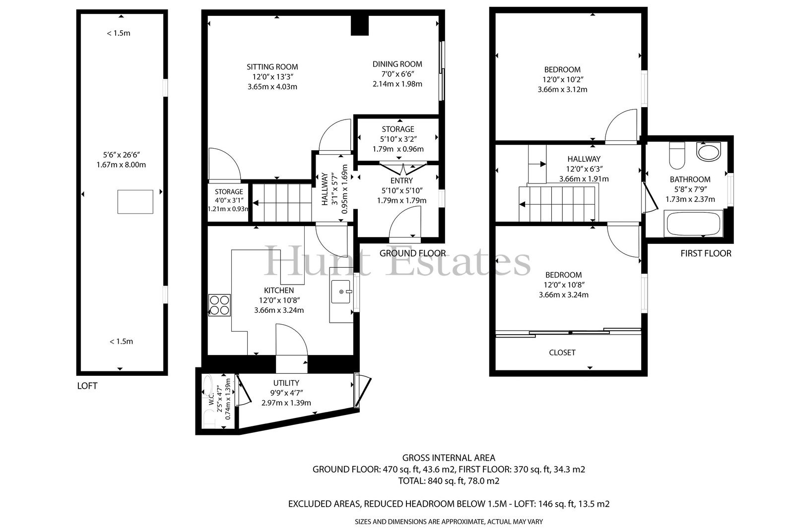 On the first floor, there are two double bedrooms and a house bathroom, along with access to a boarded loft providing useful additional storage and currently being utilised as an office.