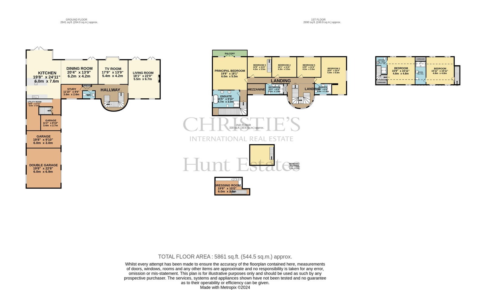 - 5 beds plus separate 2 bedroom apartment