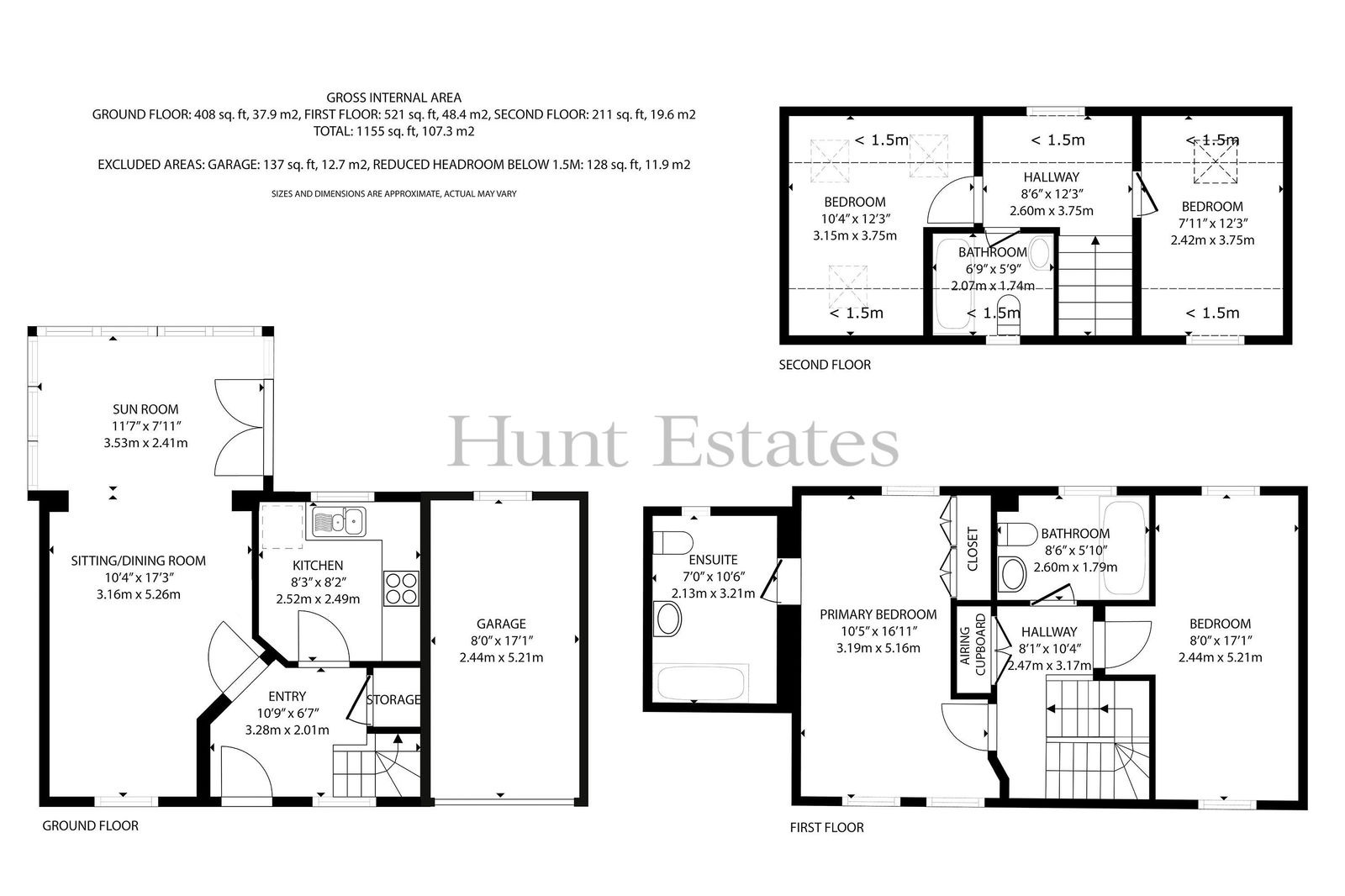 The ground floor features a separate kitchen and a bright sitting/dining room that flows seamlessly into a conservatory, creating an excellent family and entertaining space. The first floor comprises the primary bedroom with ensuite bathroom, a second bedroom, and a house bathroom. Two further bedrooms and an additional house bathroom are located on the top floor.