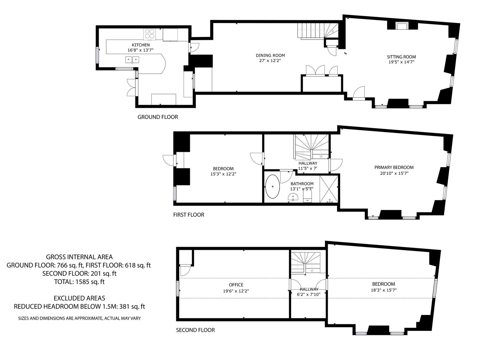 Spread across three floors, the property comprises three reception rooms, a house bathroom, and a cloakroom and three double bedrooms.