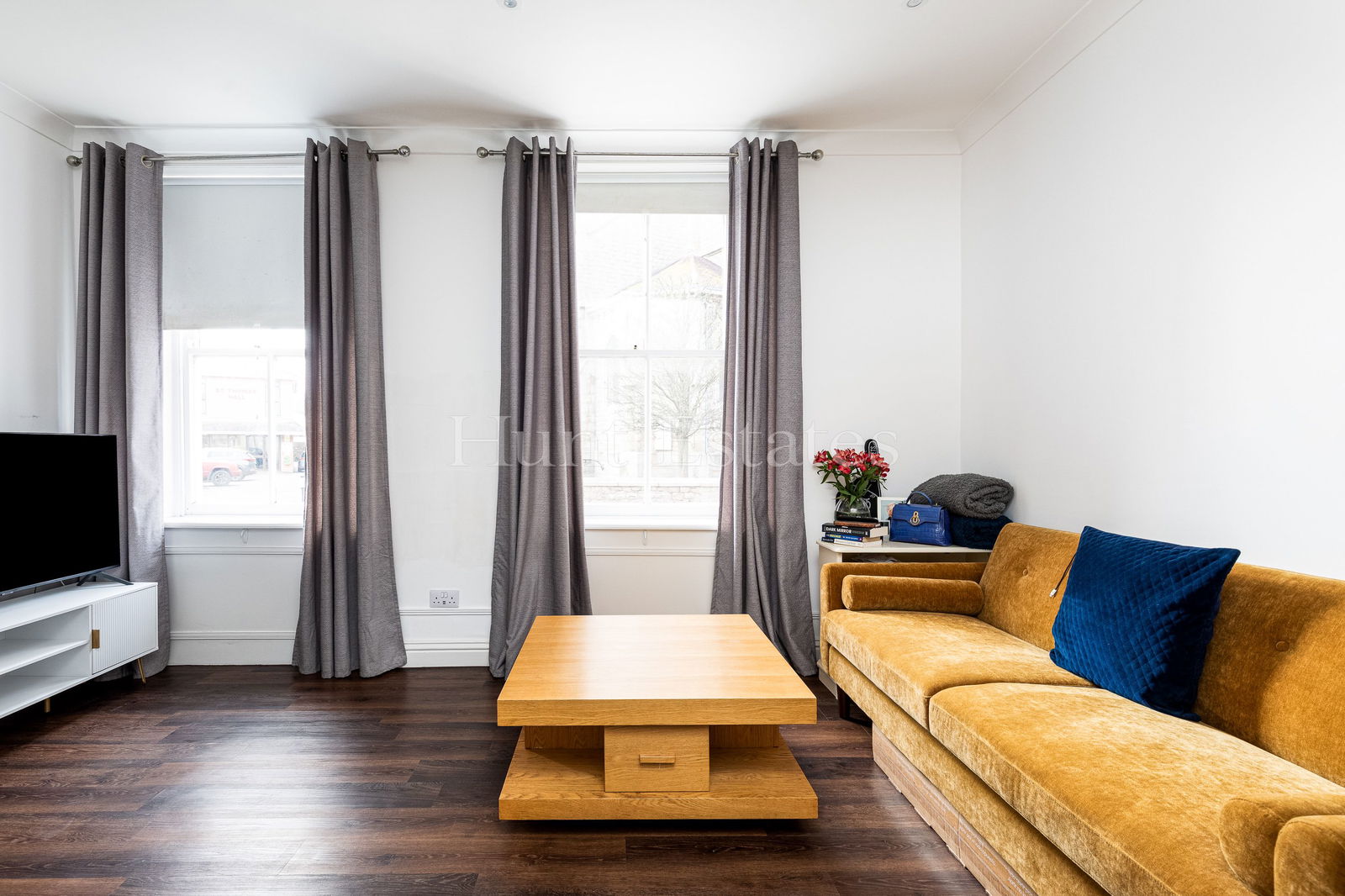 The accommodation comprises an open-plan lounge/kitchen/diner, a double bedroom and a bathroom. The apartment forms part of a period conversion and retains attractive character features, including high ceilings and large single-glazed windows. Please note the windows are listed, and any improvement would require the installation of secondary glazing.