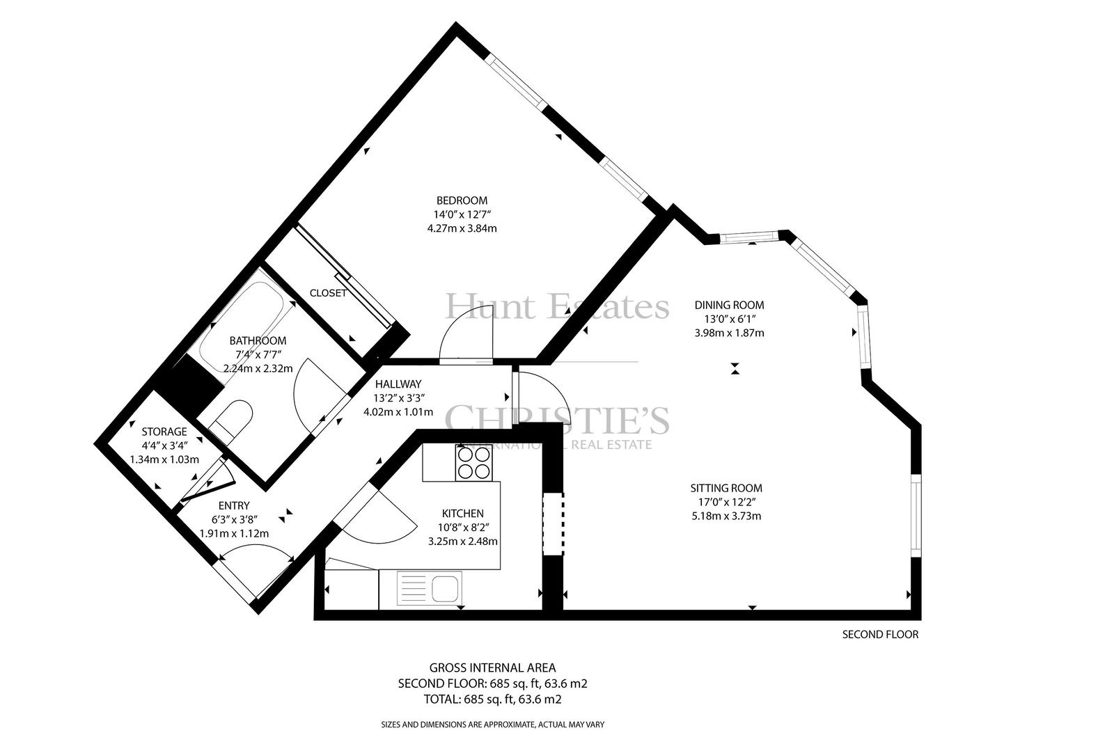 The accommodation comprises: entrance hall with a storage cupboard, separate kitchen with integrated washing machine, dishwasher, fridge/freezer, hob and oven, a large sitting room filled with natural light and a good-sized double bedroom with wardrobes and a house bathroom.