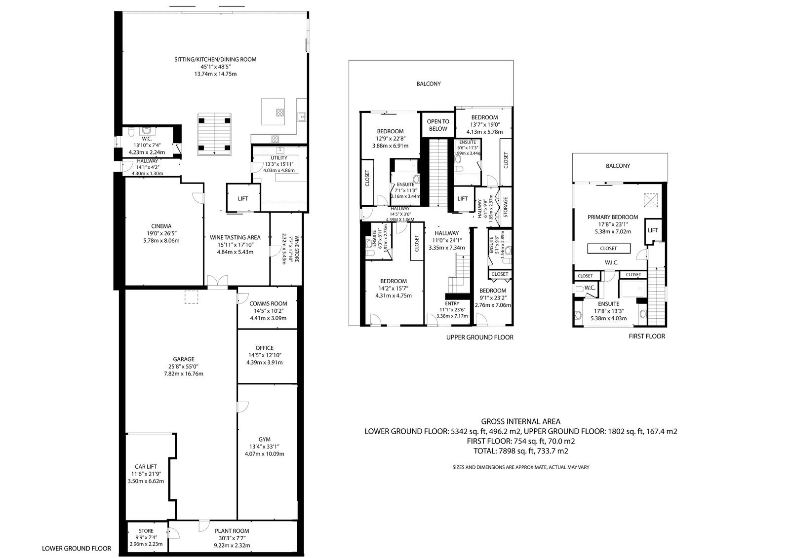 There are two further luxurious bedroom suites located on the first-floor south side with access on to their own very substantial sun terrace.