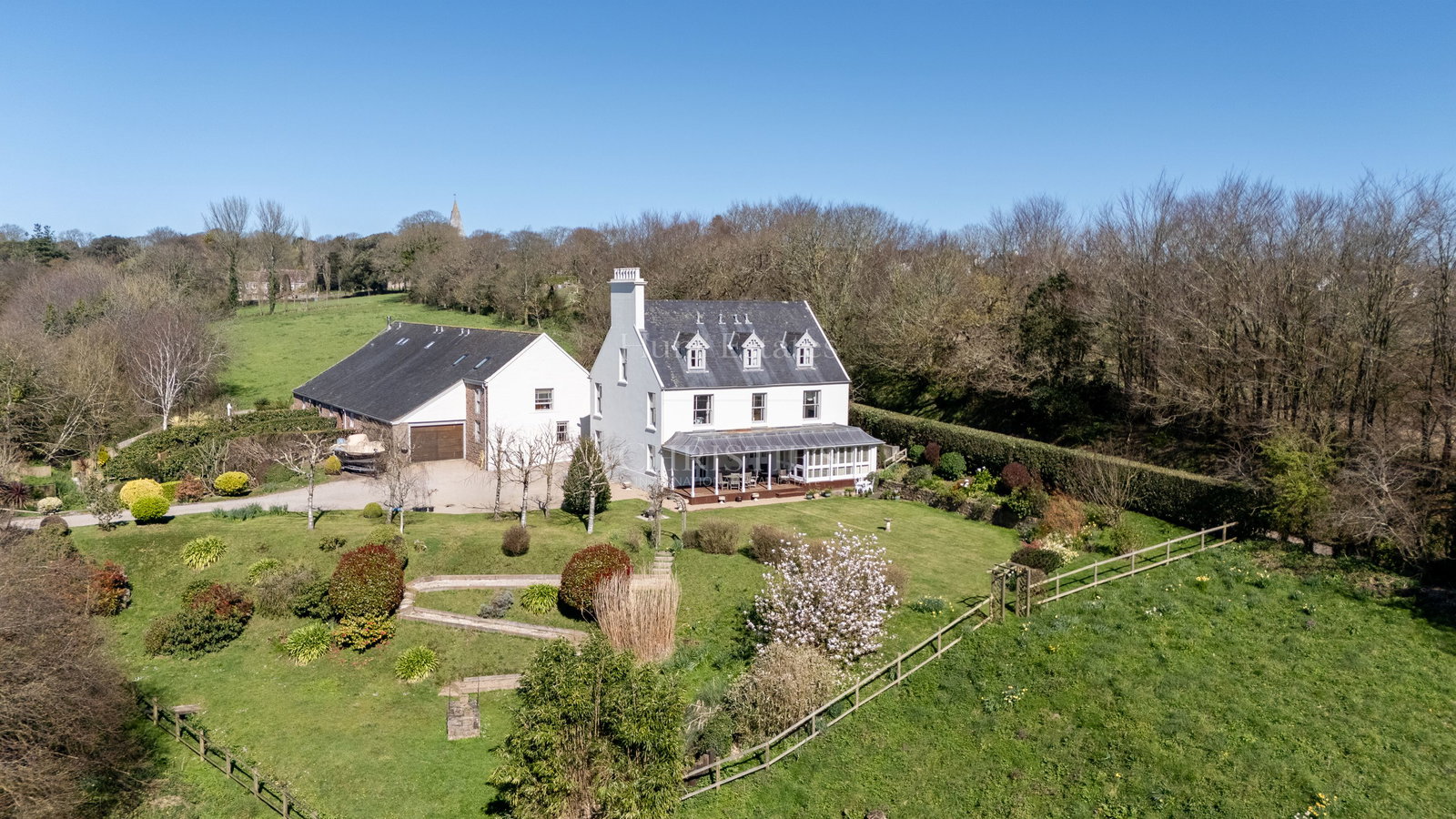 Externally, the property is set within mature gardens and open fields, with ample parking and extensive garaging. A rare opportunity to acquire a private home with adaptable accommodation in a quiet rural setting.