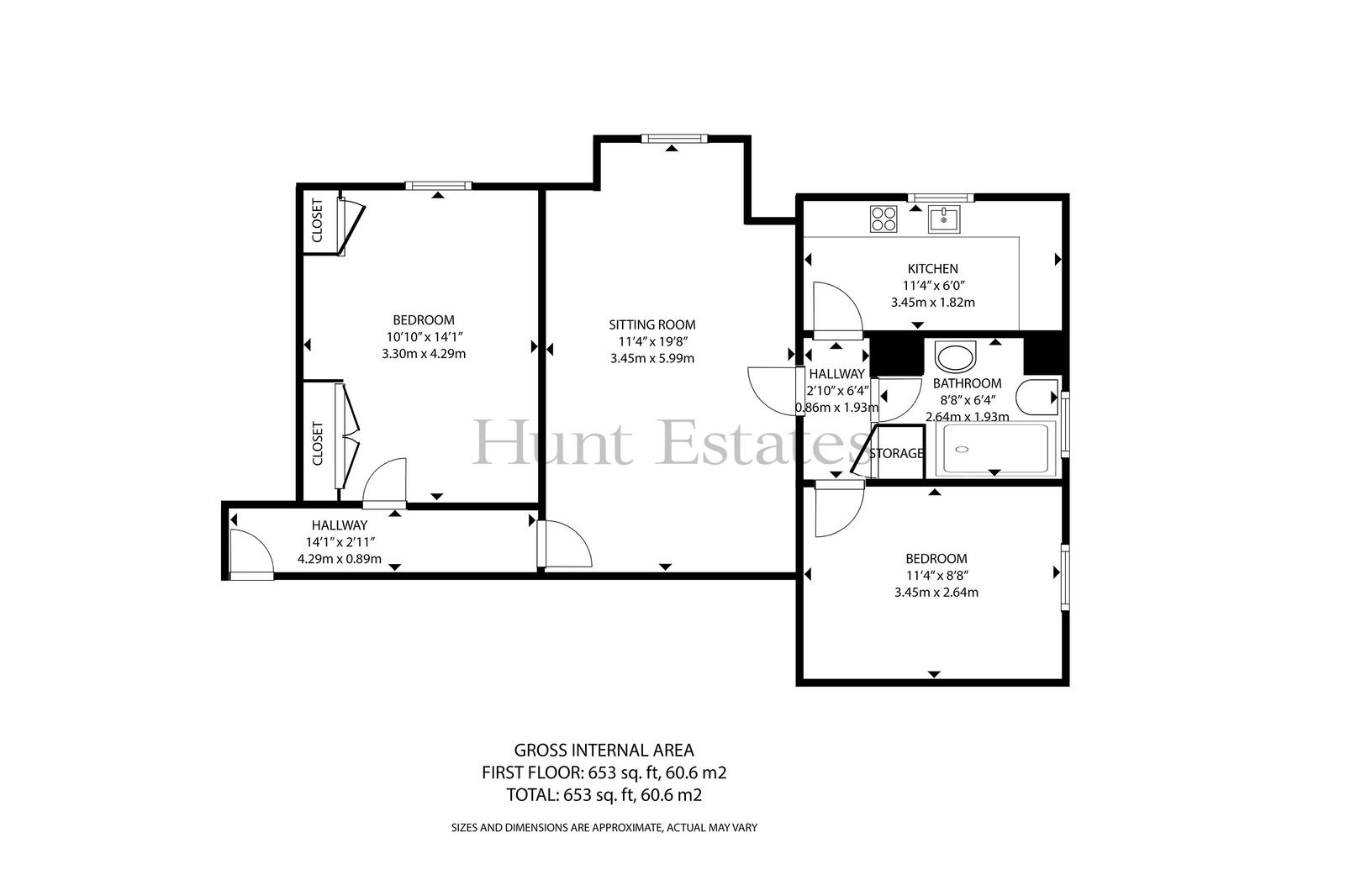 - Two bedrooms and one bathroom