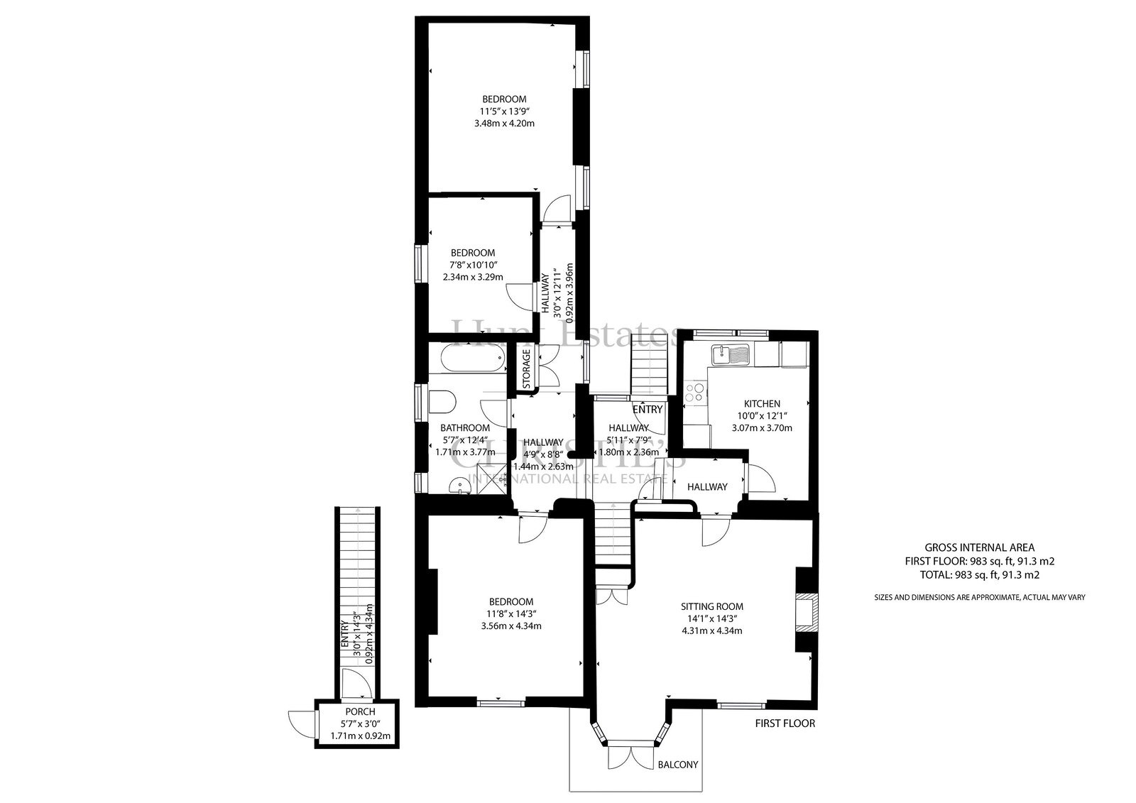 The sitting room is enhanced by a large window and patio doors opening onto a south-west facing balcony.