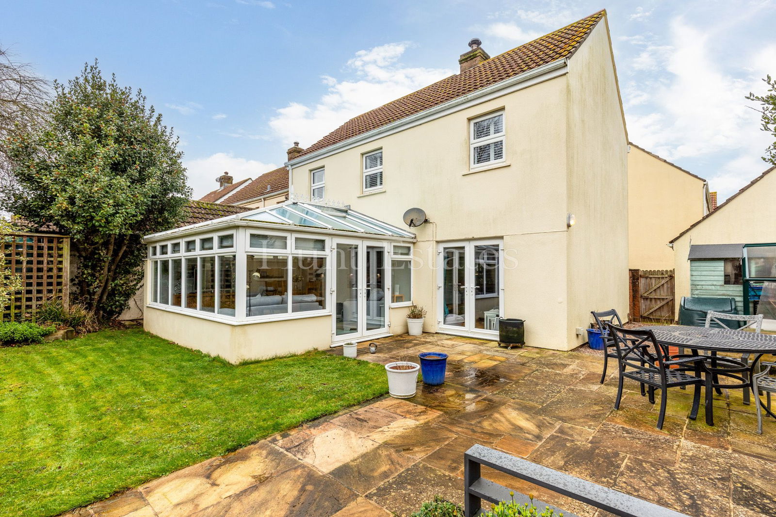 - South-facing garden with lawn, patio and space for a greenhouse