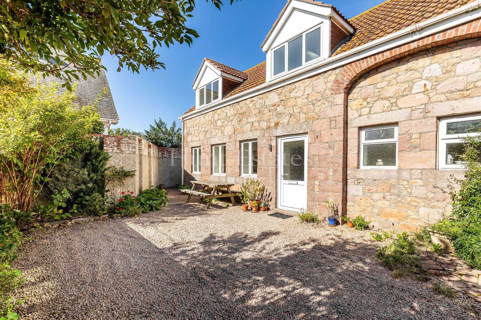 Accessed via a private drive, this delightful granite home, converted in 1980, is one of only three properties in a quiet hamlet. Tucked away offering privacy and just a short walk from Les Landes Primary School and the heart of St. Ouen’s village.