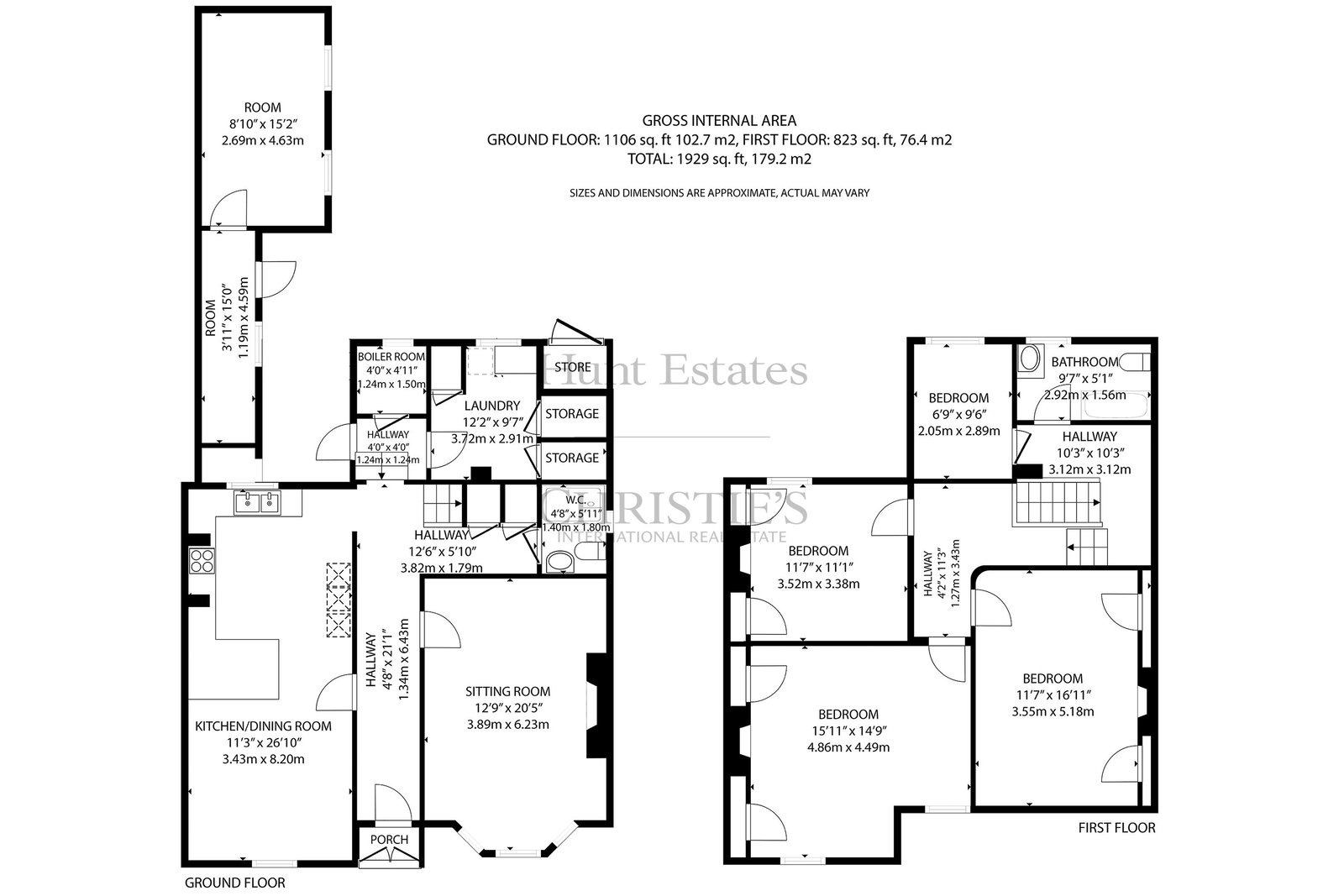 Disclaimer: All information provided herein has been obtained from sources believed reliable, but may be subject to errors, omissions, change of price, prior sale, withdrawal without notice. Hunt Estates make no representation, warranty, or guarantee as to the accuracy of any information contained herein; interested parties should conduct their own investigations and seek independent advice. No tests have been carried out on any fixtures, fittings, services, or appliances. Measurements are approximate, and photographs are for guidance only. All viewings must be arranged through Hunt Estates.